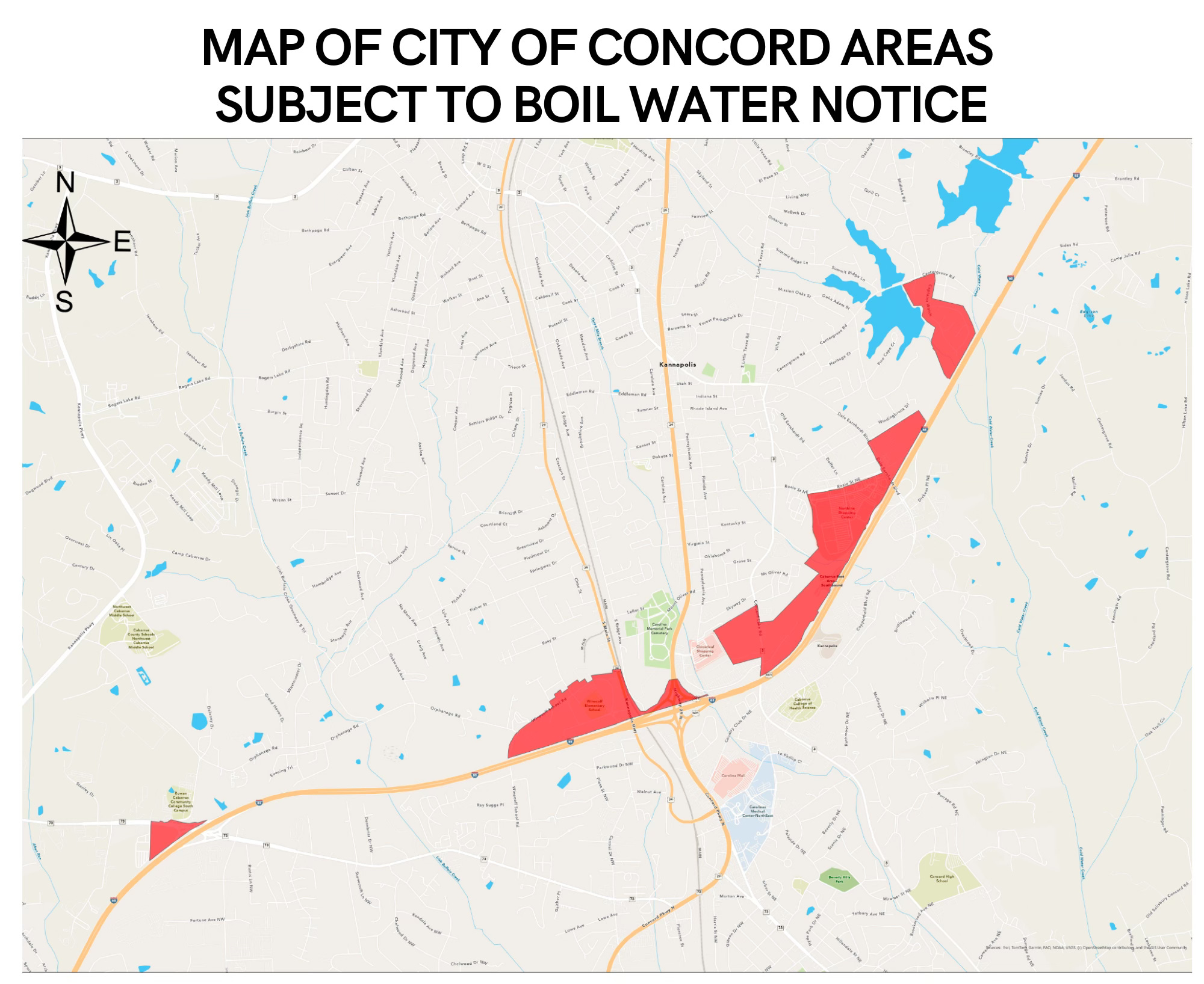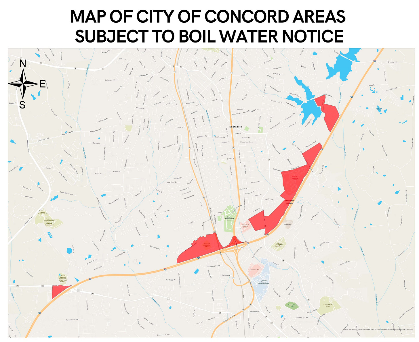 The North Carolina Department of Environmental Quality (DEQ) notified Concord of the contamination, prompting immediate action for affected residents. Approximately 419 Concord customers — primarily in areas north of Interstate 85 and N.C. Highway 73 — receive water from Kannapolis and are subject to the advisory.