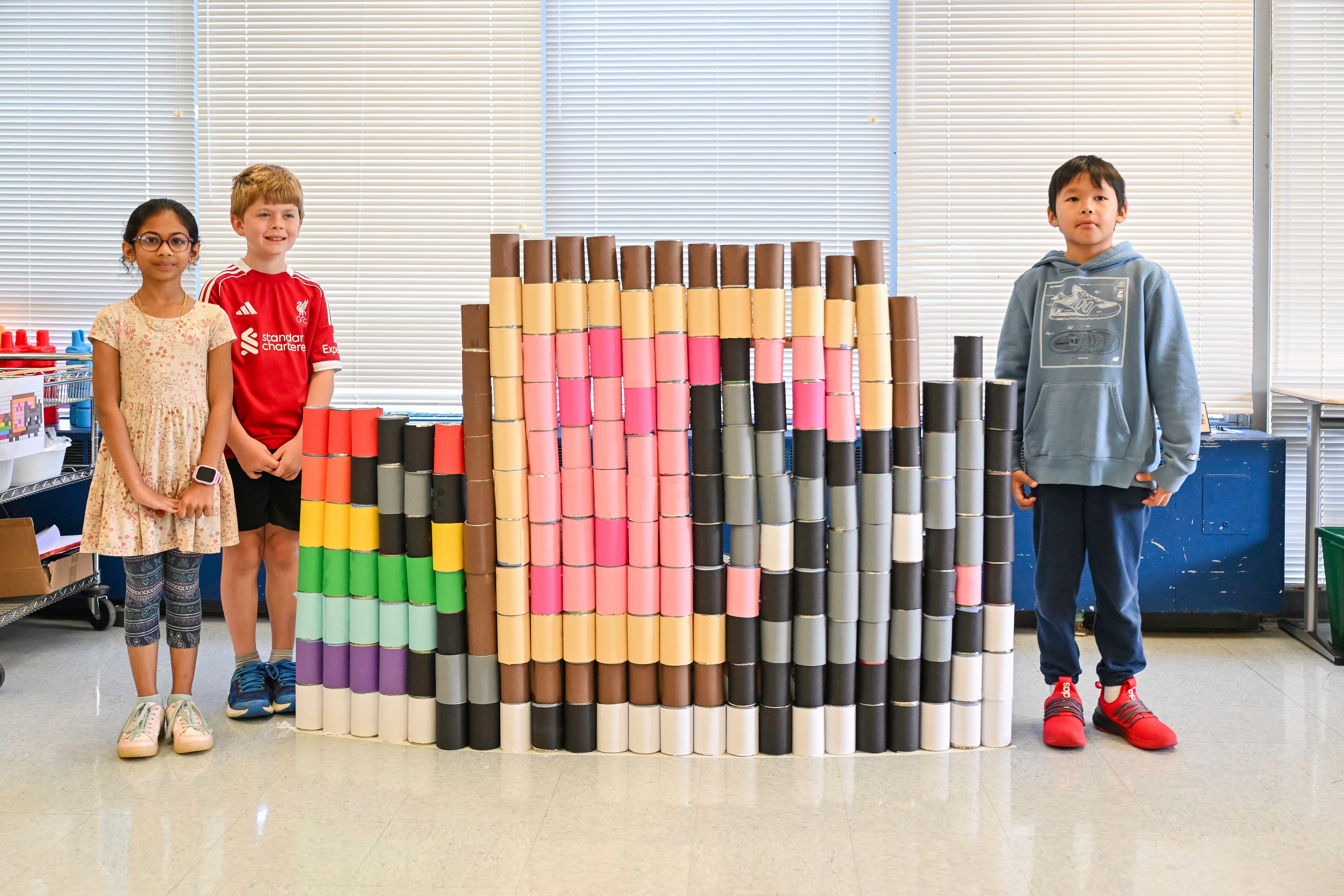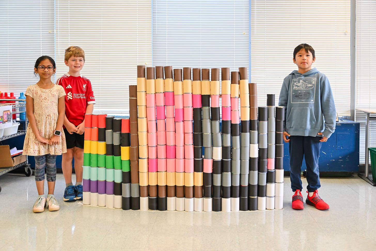 Using roughly 430 cans, third graders constructed a colorful version of Nyan Cat — a colorful, pixelated cat with a Pop-Tart body inspired by a viral YouTube video that is now an Internet meme.
