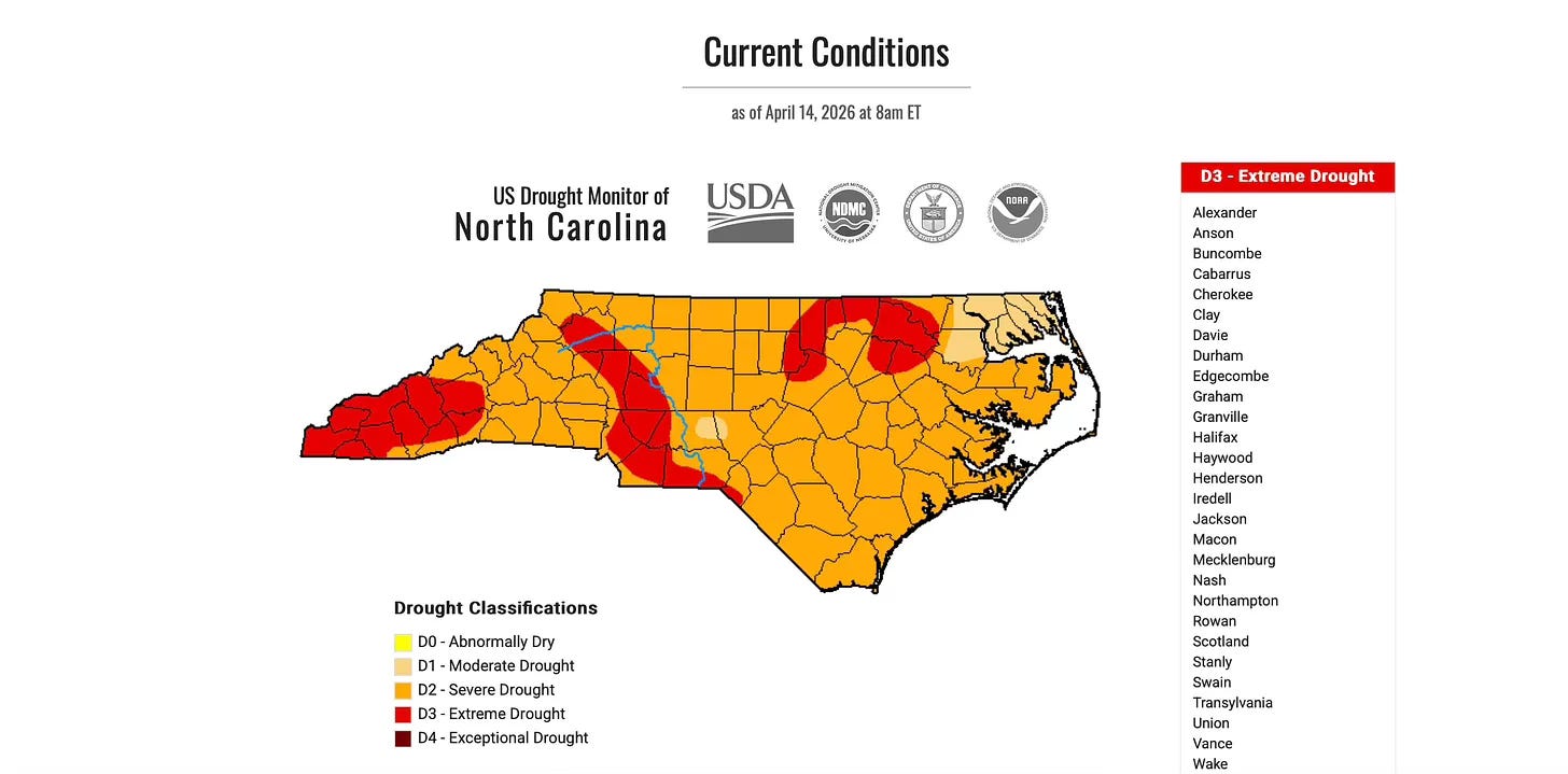 Officials across the county say the area is now classified under “extreme drought” (D3) conditions, following recent guidance from the North Carolina Drought Management Advisory Council. A key regional water source, Lake Fisher, is currently about 11 inches below full capacity, raising concerns about long-term supply.