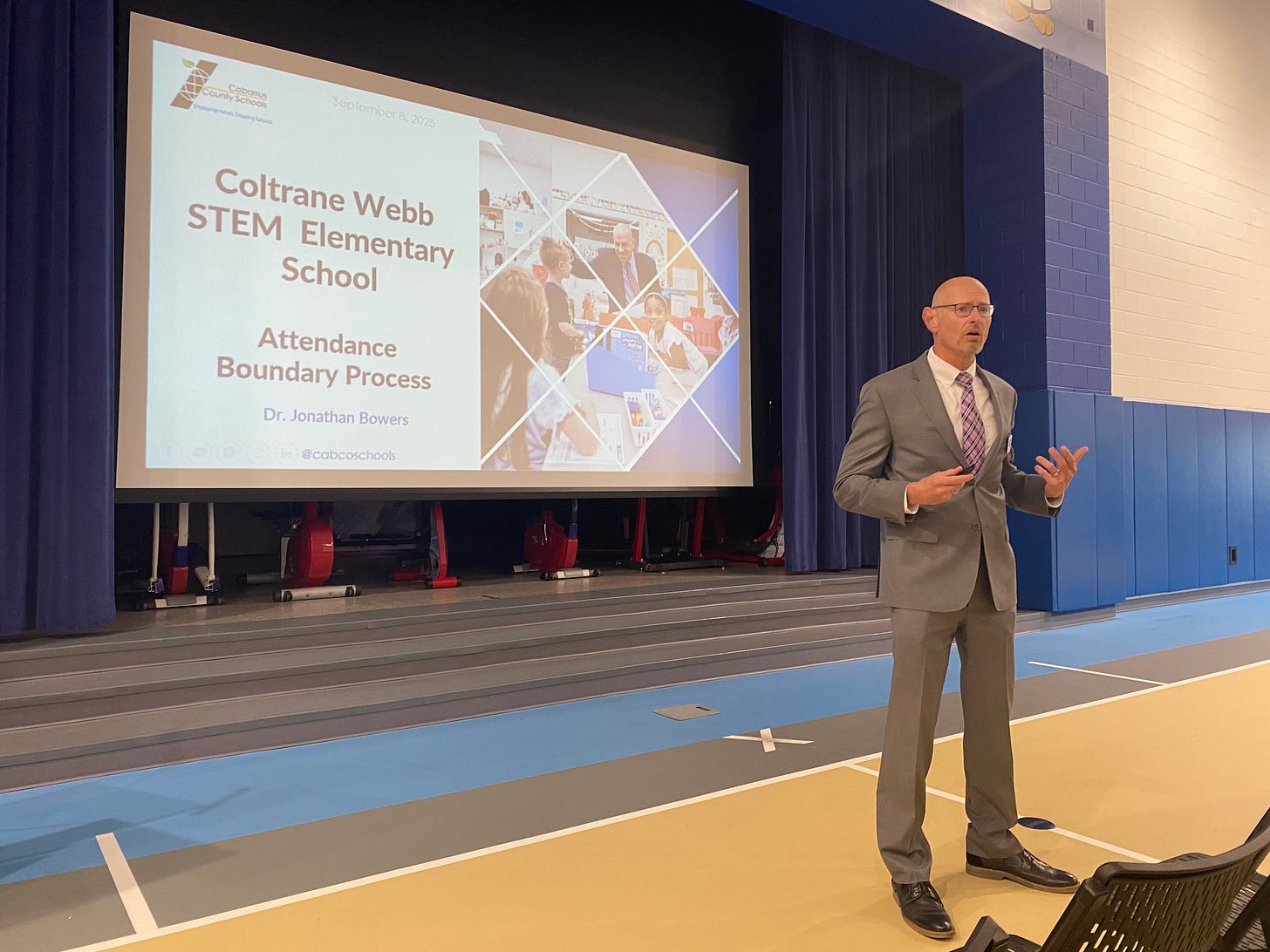 During a community meeting on the attendance boundary process for the new Coltrane-Webb STEM Elementary School — scheduled to open next school year — district leaders addressed a key concern from families connected to the former Beverly Hills Elementary.