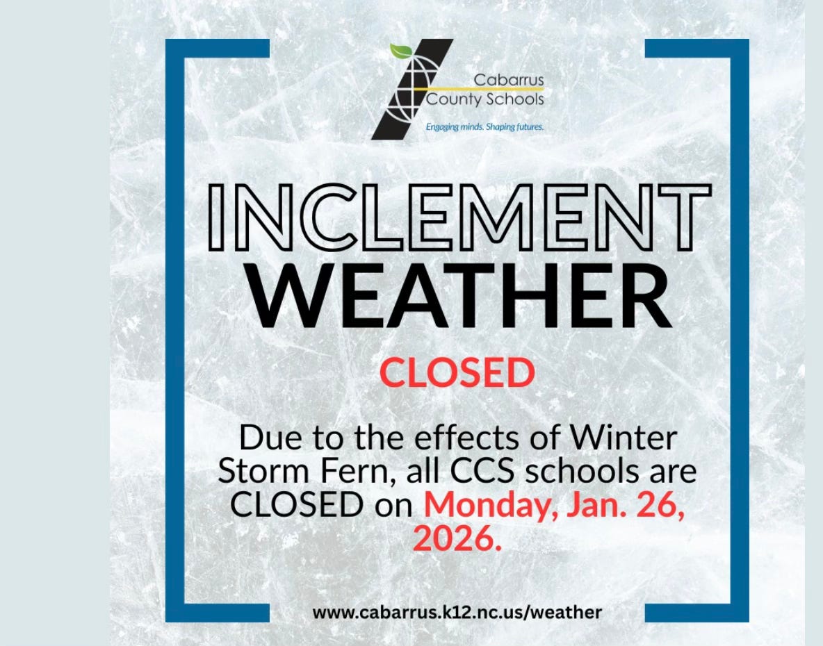Cabarrus County Schools will close all campuses on Monday, Jan. 26, citing lingering impacts from Winter Storm Fern and concerns about unsafe travel conditions.