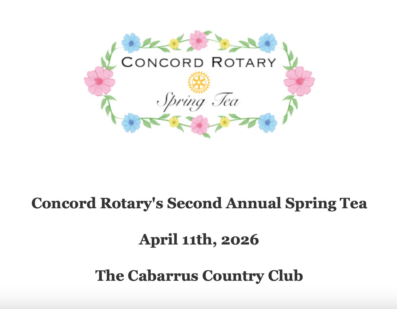 The Rotary Club of Concord will host its 2026 Spring Tea on April 11 at the Cabarrus Country Club, continuing a growing fundraising tradition aimed at supporting local education and community programs.