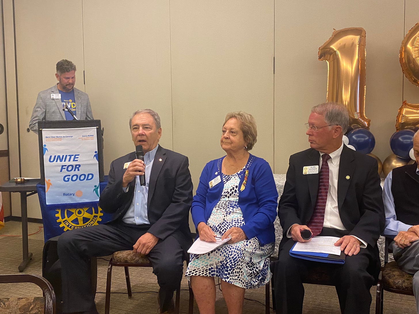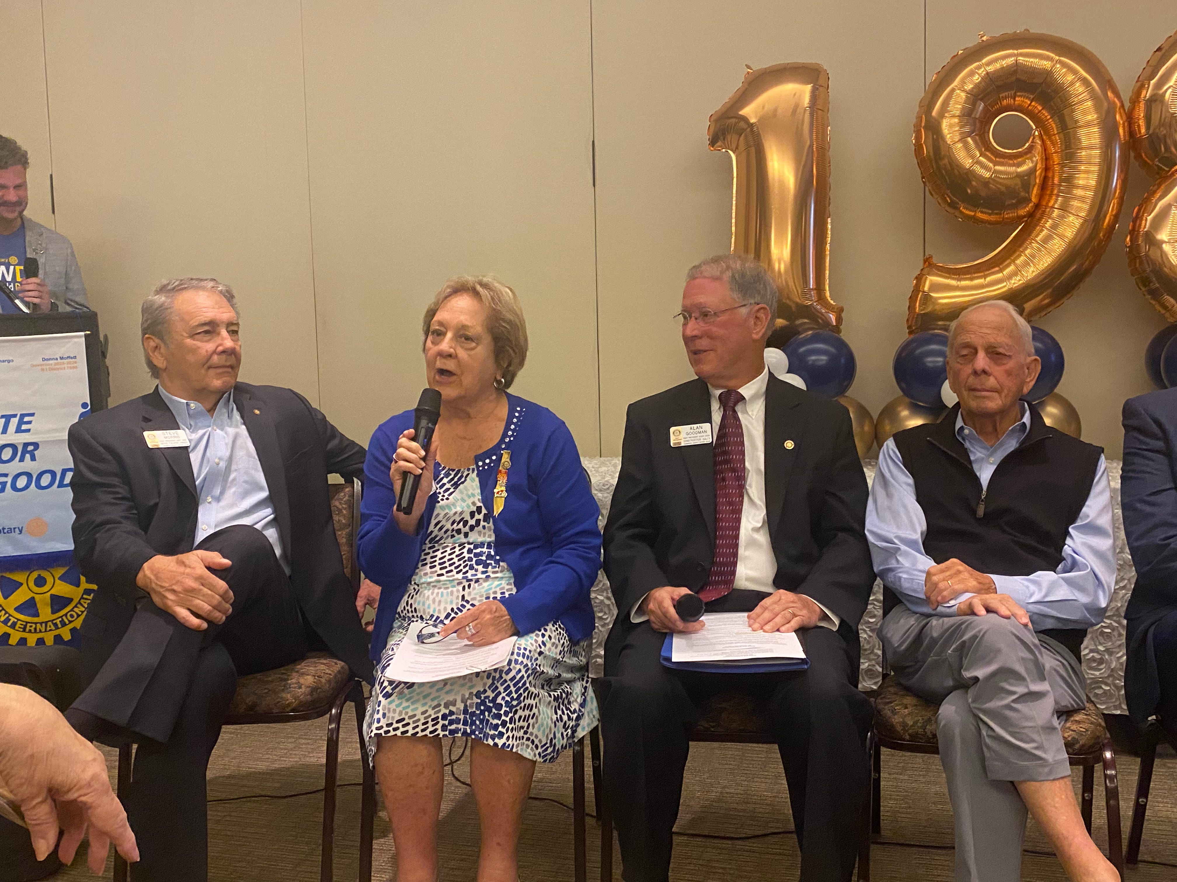 The club’s first female member, Cyndie Mynatt, joined in the early 1990s and later served as president from 2013–14. In a prerecorded video, she reflected on what it meant to be invited into Rotary at that time.