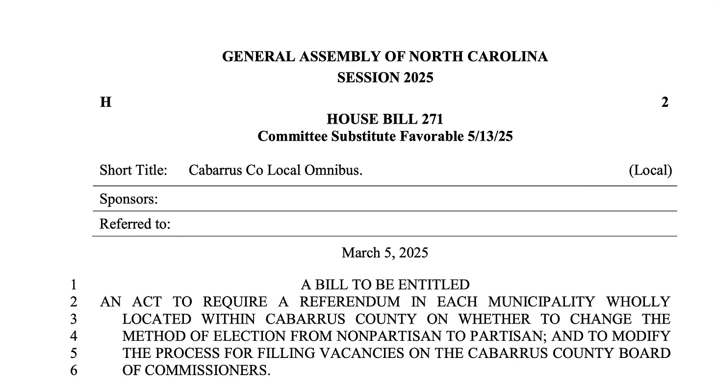 House Bill 271, which seeks to make Cabarrus municipal races partisan, will also alter how Cabarrus Commission vacancies are decided