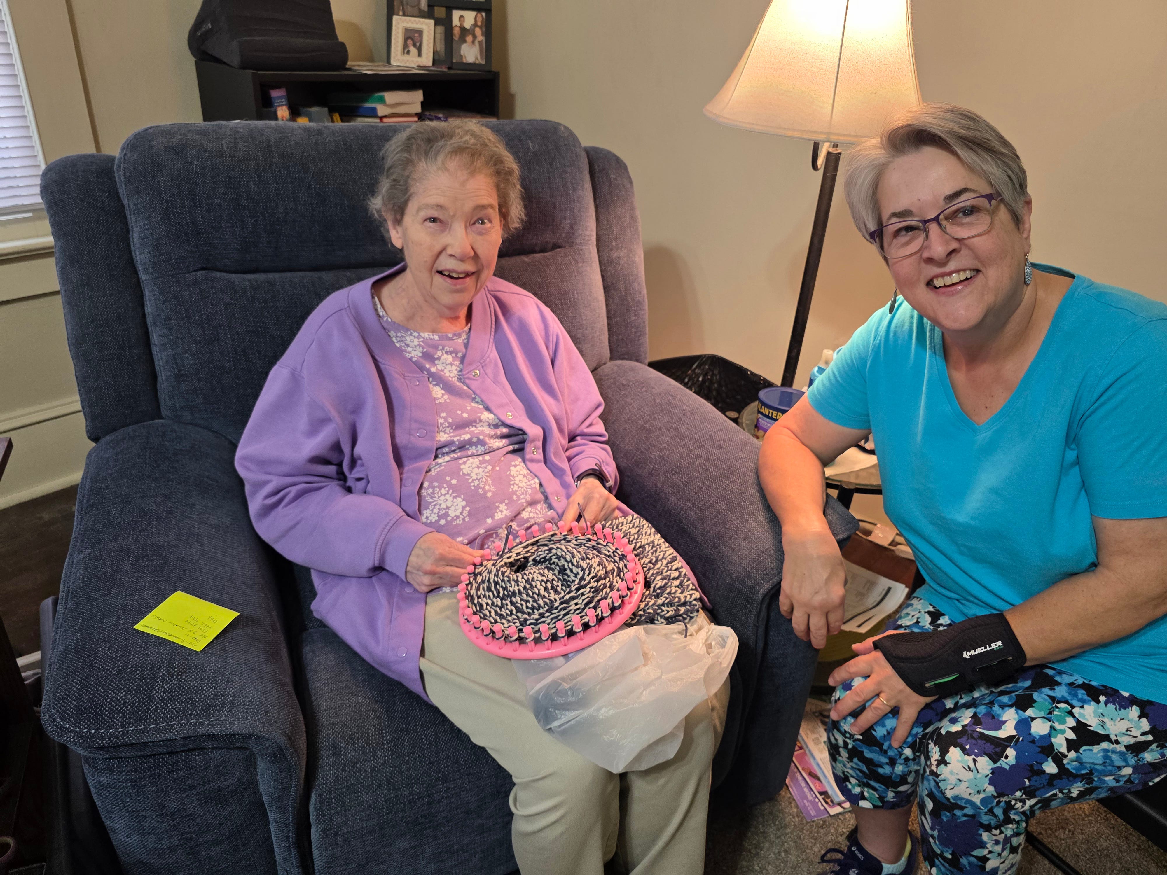 “When we first met, I found out we both enjoyed a lot of the same things, like sewing and needlework,” Polk said. Earlier this week, she took Wilma to Hobby Lobby to pick out supplies for a knitting project, and she has even made cat-themed curtains for Wilma’s kitchen.