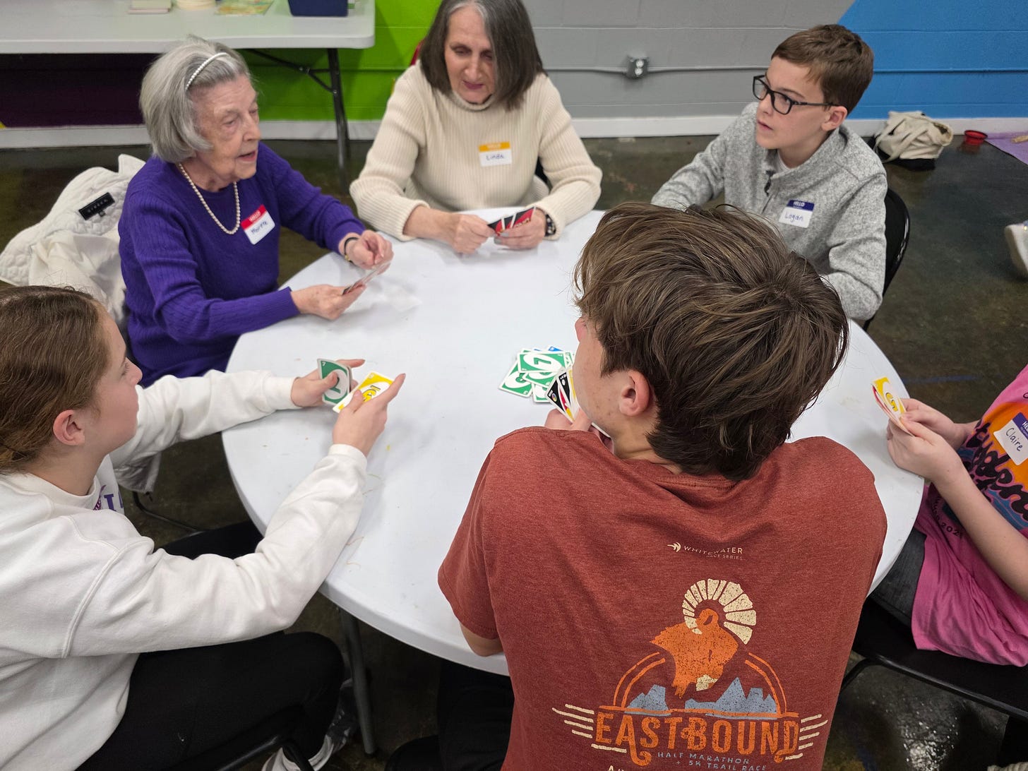 At One Life Church in Concord, a youth group recently invited seniors affiliated with Elder Orphan Care for an evening of pizza, Uno and crafts.