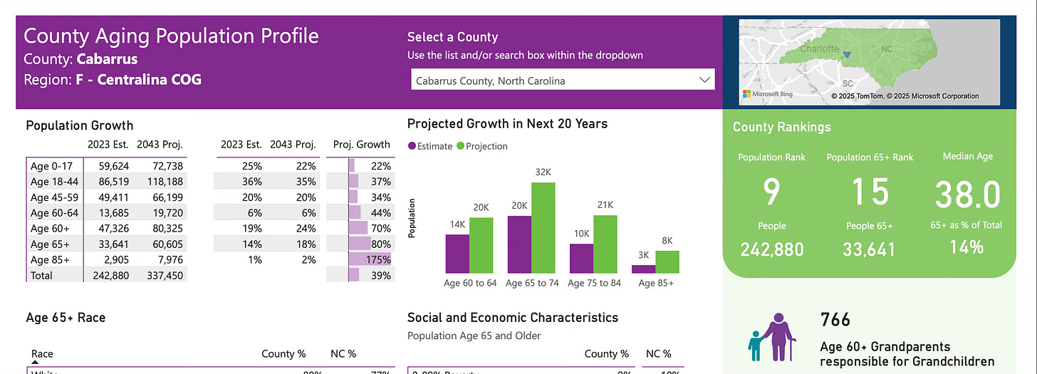 Roughly 14% of Cabarrus County residents are 65 or older, according to U.S. Census data. With the county continuing to experience rapid growth, that share is expected to rise in the coming years.