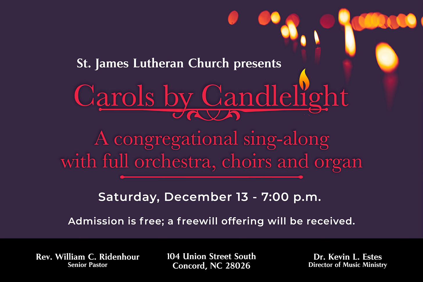 St. James Lutheran Church will host its first Carols by Candlelight program on Saturday, Dec. 13 at 7 p.m., inviting the community to take part in a unique musical retelling of the Christmas narrative.
